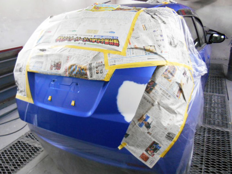 車のカラーNoに基づいて、塗料を調合してもともとのカラーと同じ塗料を作っていますので仕上がりの状態にはご安心ください