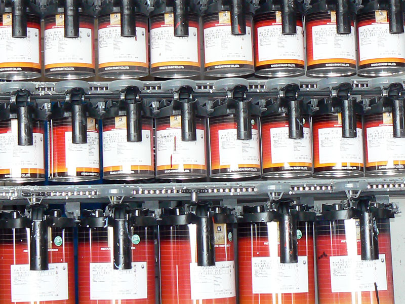 塗装終了後に乾燥室で乾燥し、コンパウンド等を使用して磨き上げます